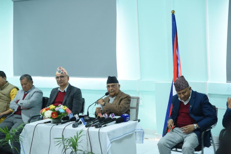 पार्टी केन्द्रीय कार्यालय च्यासलमा बसेको विघटित संसदीय दलको बैठकलाई मंगलबार सम्बोधन गर्दै अध्यक्ष ओलीले प्रतिनिधि सभा विघटनदेखि नयाँ सरकार निर्माणसम्मका सबै प्रक्रिया संविधानविरुद्ध, अलोकतान्त्रिक र नियोजित सत्ता कब्जाको परिणाम भएकाे बताउनुभयाे। उहाँले भन्नुभयो, ‘संसदको विघटन हरेक कोणबाट असंवैधानिक छ, प्रतिनिधि सभा विघटन गरेर असंवैधानिक हिसाबले बाघको छालामा स्यालको रजाइँ गरिएको छ, यस्तो अराजक प्रक्रियालाई हामी स्वीकार्न सक्दैनौँ।’