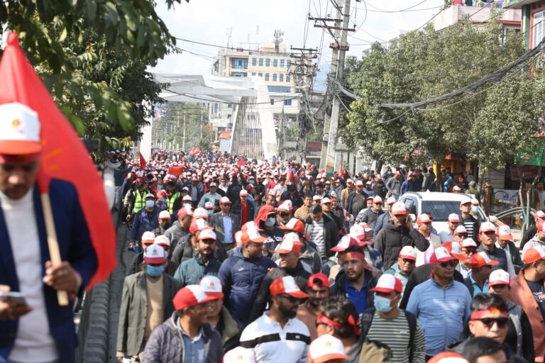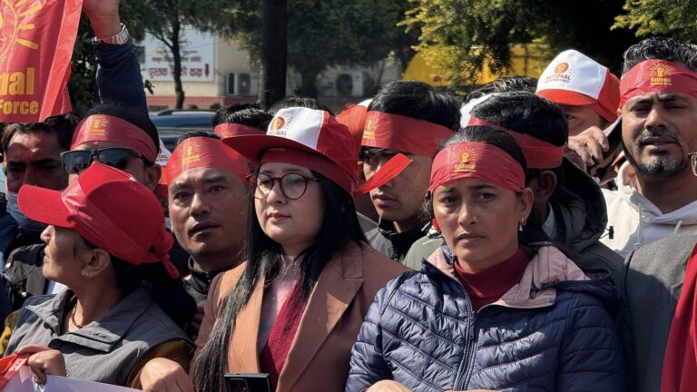 फोर्स घोषणाअघि एमालेनिकट युवाहरू अहिले मार्चपासका लागि बानेश्वर क्षेत्र पुगेका छ्न्। रामकुमारी झाँक्री पनि नेसनल भोलेन्टियर फोर्सको र्यालीमा सहभागी हुनुहुन्छ।
