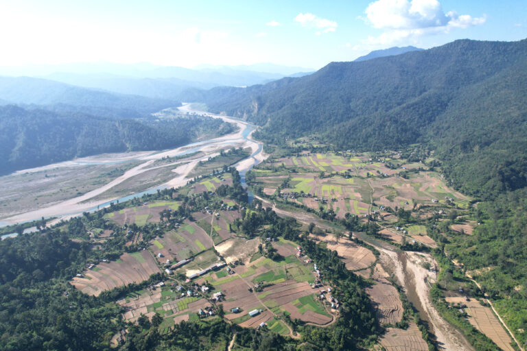 दाङको बबई गाउँपालिका–१ स्थित गङ्गटे गाउँ, बबई नदी र आसपासको भूभाग। तस्बिर : कुलदीप न्यौपाने/रासस