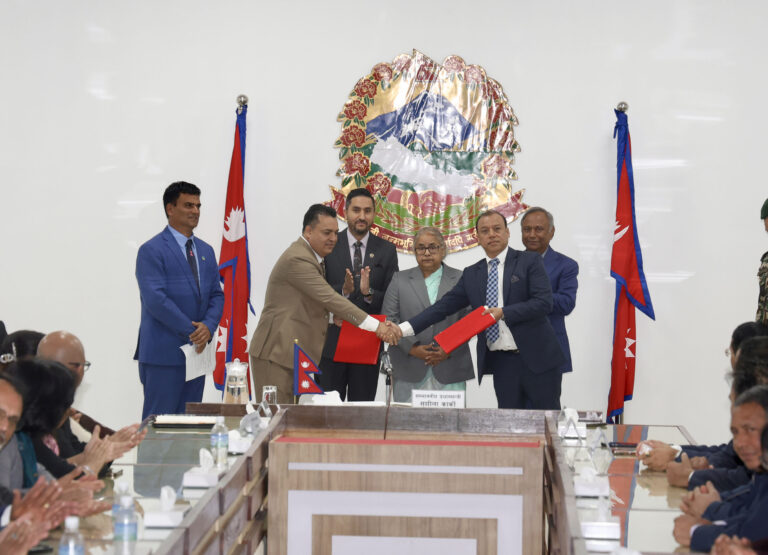 काठमाडौं- गैर आवासीय नेपाली संघ (एनआरएन) बीच आज एकता सम्बन्धी सहमतिमा हस्ताक्षर भएको छ। प्रधानमन्त्री सुशीला कार्कीको उपस्थितिमा महेश श्रेष्ठ र डा. बद्री केसीले एकता सम्बन्धी सहमति पत्रमा हस्ताक्षर गर्नुभएको छ।