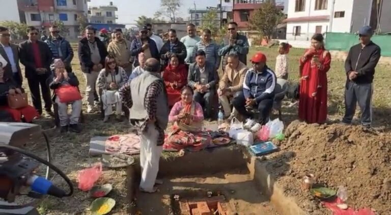 अध्यक्ष ओली पत्नी राधिका शाक्यले बिहीबार औपचारिक रूपमा भवन शिलान्यास गर्नुभएको हो।