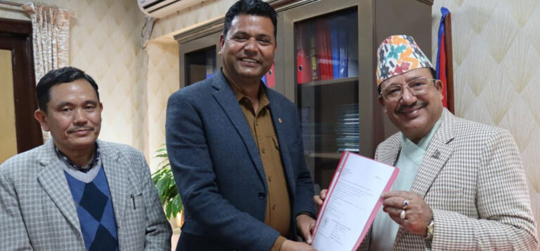 आयोगको कार्यालय कान्तिपथ पुगेर एमालेको केन्द्रीय निर्वाचन आयोगका प्रमुख निरज आचार्यले आयोगका कार्यवाहक प्रमुख आयुक्त रामप्रसाद भण्डारीलगायतलाई भेटेर दल दर्ताको निवेदन निवेदन दर्ता गराएको हो ।