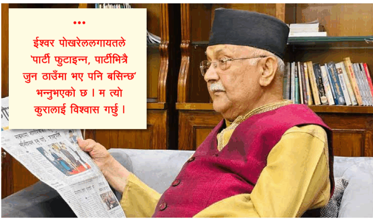 पाइन्छ, पाइने कुरा हो। तर यतिबेला देशको अवस्था यस्तो छ। र वास्तवमा देशमा अनेक असहजता अप्ठ्याराहरू पार लगाएर आएको सक्रिय नेतृत्व भइराखेको, जटिल अवस्थामा अस्वभाविक ढंगले नेतृत्वको विवाद उठाउनु, यो उम्मेदवारी दिने मात्र कुरा होइन नि ! पहिलेदेखि ओलीबिनाको एमाले नारा जो विरोधीहरूले लगाइराख्या थिए, त्यो नारा बोकेर एमालेभित्र त्यो नाराको झन्डा बाहिरबाट फुत्त एमालेको रिङभित्र छिराउनु र त्यो उठाएर कुद्नु भनेको चाहिँ अलि अस्वभाविक हो। त्यति मात्र हो। अधिकार छ, त्यो उठाउन पाइन्छ। तर यो स्वाभाविक होइन। यस्तो बेलामा त्यसरी होइन, एकताबद्ध भएर जानुपथ्र्यो । तर मैले अघि नै भनेँ, एकता भनेको के ? एकताबद्ध बनाएर लानु भनेको के ?