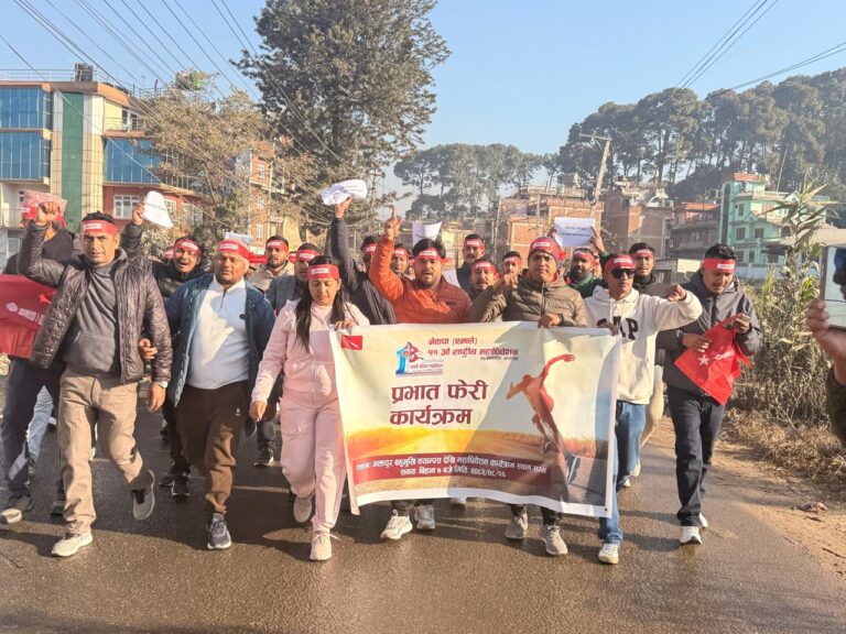 काठमाडौं-नेकपा (एमाले)को ११औँ राष्ट्रिय महाधिवेशनको पूर्वसन्ध्यामा अनेरास्ववियुले प्रभातफेरी गरेको छ। अनेरास्ववियुले आज बिहान भक्तपुर क्याम्पसदेखि सल्लाघारीस्थित महाधिवेशन उद्घाटनस्थलसम्म प्रभातफेरी गरेको हो।