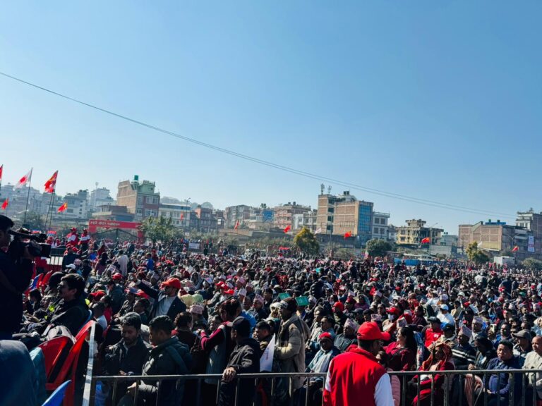 बिहानैदेखि कार्यक्रमस्थल वरपरको क्षेत्र कार्यकर्ताहरूको नारा र उत्साहले गुञ्जायमान देखिएको छ। सुरक्षा जाँचका कारण प्रवेशमा केही ढिलाइ भए पनि युवा कार्यकर्ताहरूको बाक्लो सहभागिताले माहोल निकै तातेको छ।