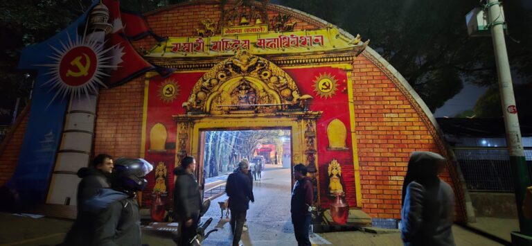 भक्तपुरको सल्लाघारीमा शनिबार उद्घाटन भएको महाधिवेशनको बन्दसत्र भृकुटीमण्डपमा हुँदैछ।