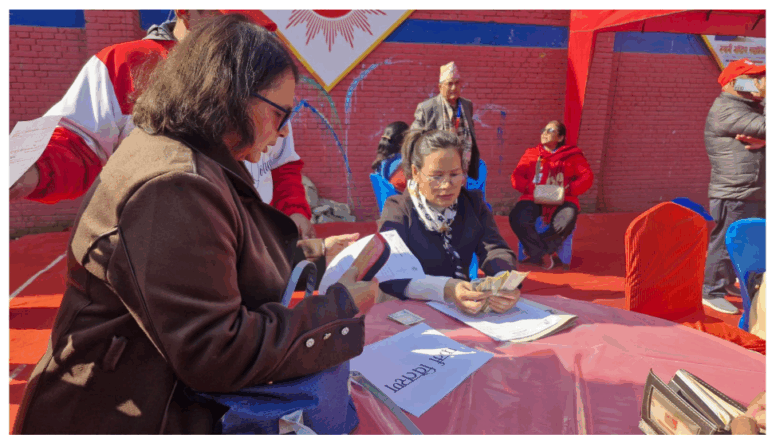 काठमाडौंको भृकुटीमण्डपमा जारी महाधिवेशनमा अहिले उम्मेदवारको मनोनयन फारम वितरण गर्ने काम भइरहेको छ।