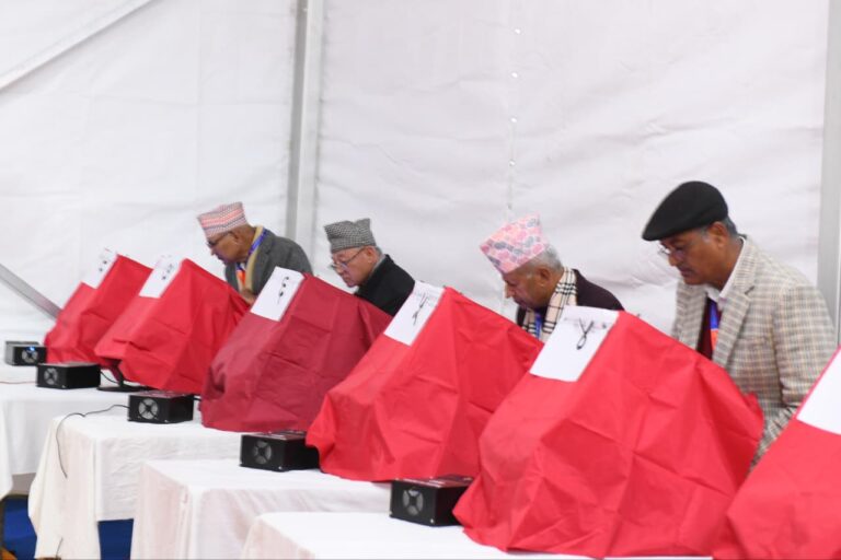 काठमाडौं- नेकपा (एमाले)को ११ औं राष्ट्रिय महाधिवेशनअन्तर्गत नयाँ नेतृत्व चयनका लागि मतदान भइरहेको छ।