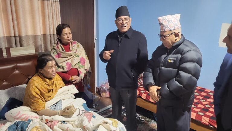 काठमाडौँ-नेपाली कम्युनिस्ट पार्टीका संयोजक पुष्पकमल दाहाल ‘प्रचण्ड’ र सहसंयोजक माधवकुमार नेपालले जेनजी आन्दोलनका क्रममा गम्भीर घाइते हुनुभएकी नेता झलनाथ खनालकी धर्मपत्नी रविलक्ष्मी चित्रकारको स्वास्थ्य अवस्थाबारे जानकारी लिएका छन् ।