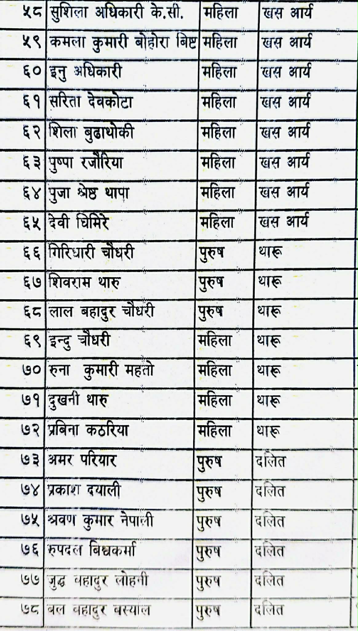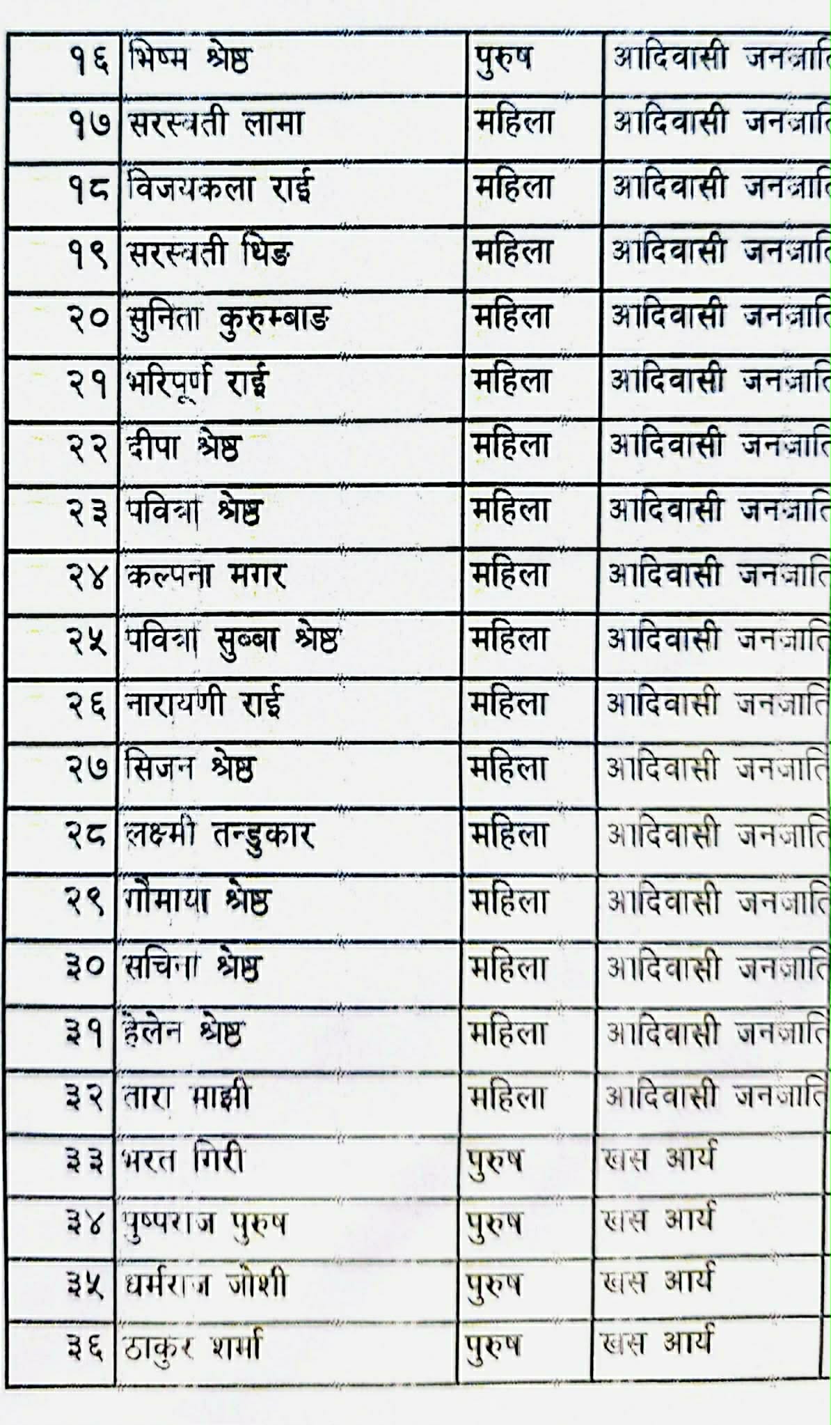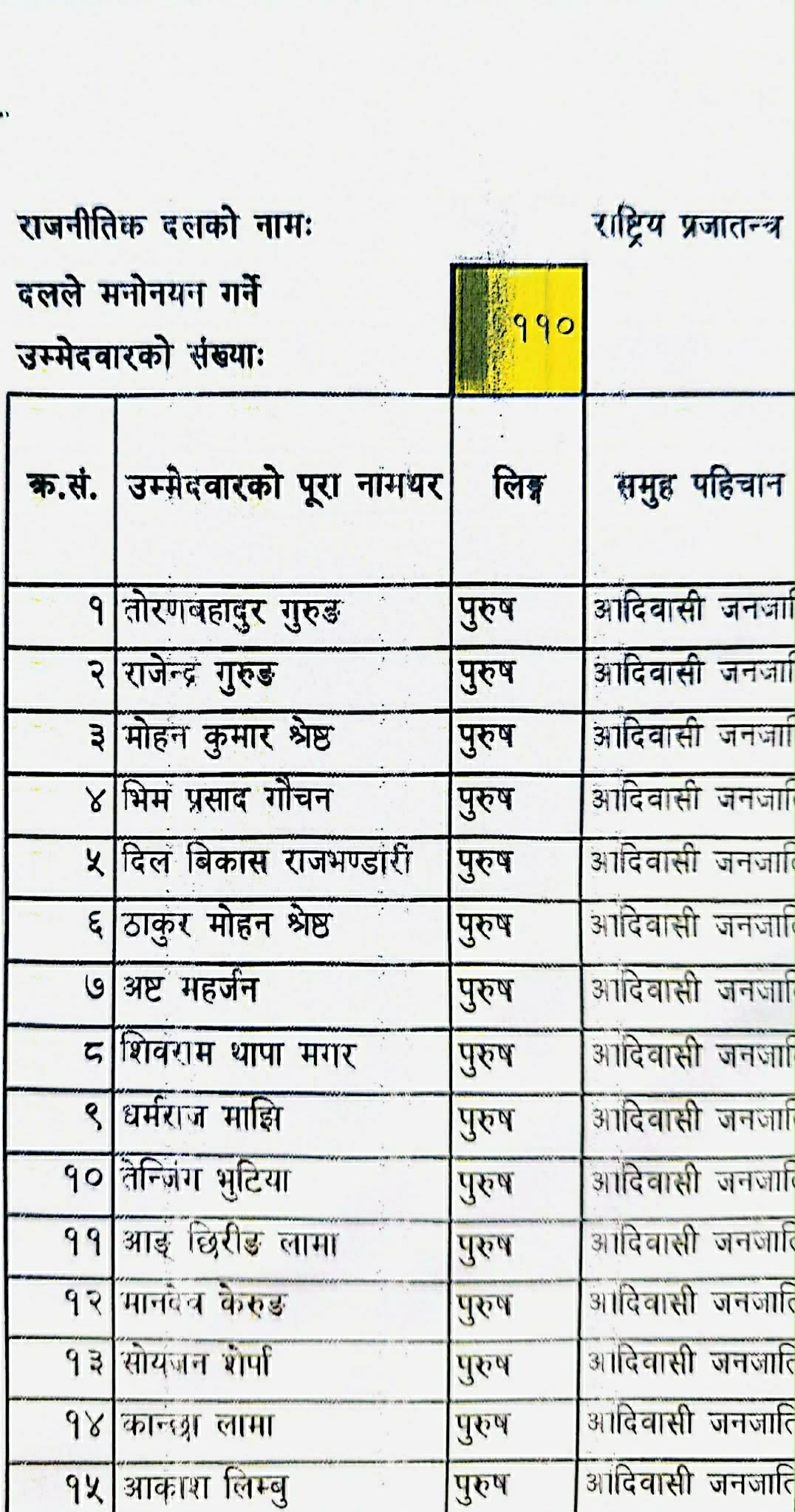 राप्रपाले आयोगमा बुझाएको बन्दसूचीमा ११० जनाको नाम समावेश छ। जसमा तोरणबहादुर गुरुङ, खुस्बु ओली, मोहनकुमार श्रेष्ठ, निरुपमा यादव, प्रह्लाद साह, गोपाल दाहाल, राजेन्द्र गुरुङलगायतको नाम छ ।