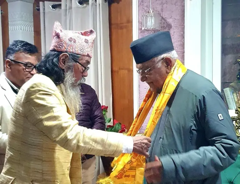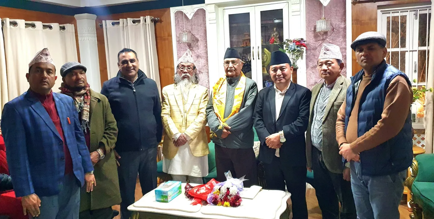 काठमाडौं-पूर्वप्रधानमन्त्री तथा नेकपा एमालेका अध्यक्ष केपी शर्मा ओलीलाई उहाँको निजी निवास गुण्डुमा पुगेर किराँत धर्म तथा साहित्य उत्थान संघका पूर्व अध्यक्ष तथा किरात ज्योतिष उत्थान संघका संस्थापक अध्यक्ष गुरु डा. चन्द्रकुमार सेर्माले पुनः अध्यक्षमा निर्वाचित हुनुभएकोमा हार्दिक बधाई तथा शुभकामना व्यक्त गर्नुभएको छ।