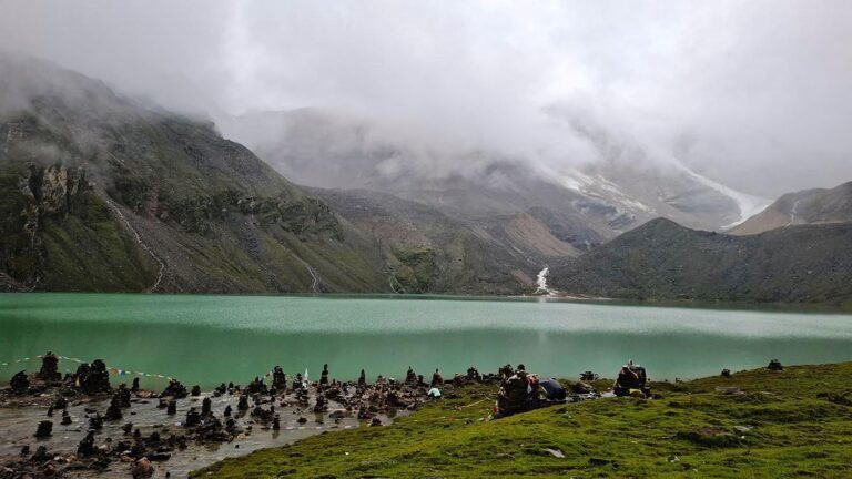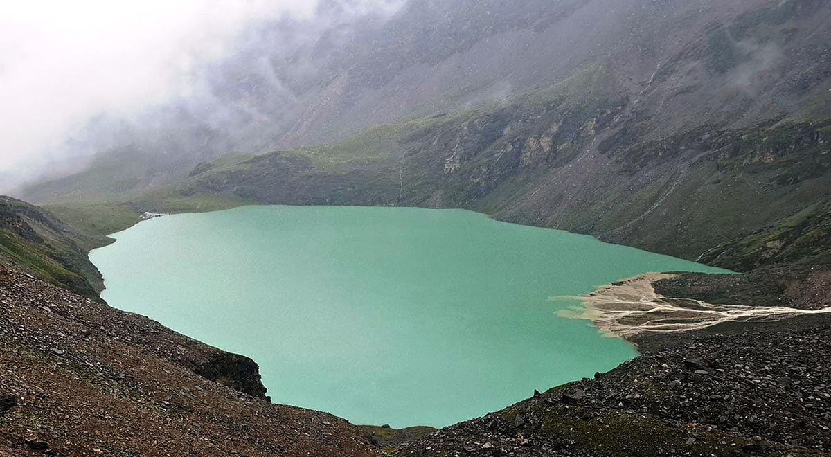 डोल्पाको जगदुल्ला गाउँपालिका-१ स्थित हिमालको काखमा रहेको जगदुल्ला ताल । तालमा तीर्थ व्रतका लागि सयौँ स्थानीयबासीहरु यहाँ आउने गर्दछन् । तस्बिरः हेमन्त केसी/रासस