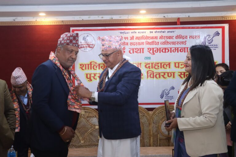 प्रेस चौतारी मोरङले हरेक बर्ष प्रदान गर्दै आएको शालिग्राम मन्जु दाहाल पत्रकारिता पुरस्कार २०८२ उदयपुरकी पत्रकार रेणु पराजुलाई प्रदान गरेको छ । पराजुलीलाई नगद २१ हजार सहित प्रमाणपत्र प्रदान गर्नुभएको हो । त्यसैगरी चौतारी मोरङले नेकपा एमालेको ११ औं महाधिवेशनबाट केन्द्रिय सदस्यमा निर्वाचित जीवन घिमिरे, ऋषिकेश पोखरेल, पर्शुराम बस्नेत, दिलिप बगडिया, शिल्पा निराला कार्की र अनुशासन आयोग सदस्य राजमती इङनामलाई बधाई तथा शुभकामना व्यक्त गरेको छ ।