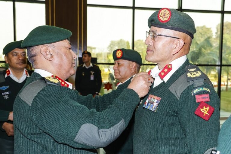 काठमाडौँ-प्रधानसेनापति अशोकराज सिग्देलले विभिन्न दर्जामा पदोन्नति भएका सैनिक अधिकृतहरूलाई दर्ज्यानी चिन्ह प्रदान गरेका छन्। शुक्रबार जंगी अड्डामा आयोजित एक कार्यक्रमका बिच प्रधानसेनापति सिग्देलले दर्ज्यानी चिन्ह प्रदान गरेका हुन्।