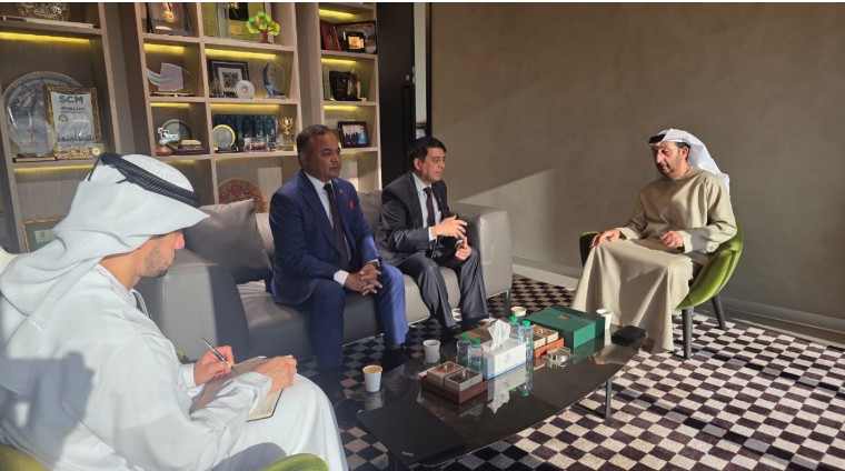 संयुक्त अरब इमिरेट्स (यूएई) का लागि नेपाली महामहिम राजदूत तेजबहादुर क्षेत्रीको उपस्थितिमा सम्पन्न भेटवार्तामा दुवै पक्षले आगामी दिनमा नेपाल-यूएई आर्थिक सहकार्यलाई थप प्रभावकारी बनाउँदै पारस्परिक लाभका साझेदारीहरू अघि बढाउने प्रतिबद्धता व्यक्त गरेका छन्।