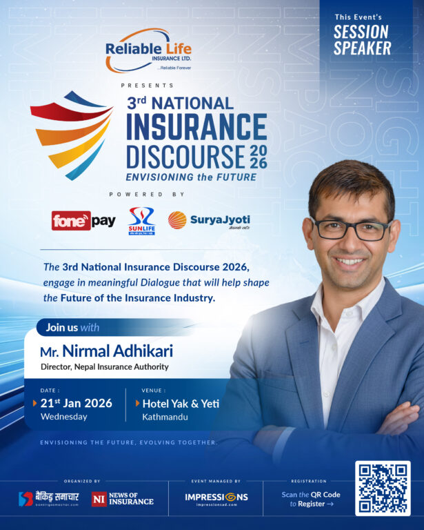 रिलायबल नेपाल लाइफ मुख्य प्रायोजक रहेको तेस्रो इन्स्योरेन्स डिस्कोर्श २०८२ माघ ७ गते काठमाडौंको याक एण्ड यति होटलमा हुनेछ। यस्तै, पावर्ड वाइमा फोन पे, सन् नेपाल लाइफ र सुर्यज्योति लाइफ रहेको यस कार्यक्रममा नियामकीय निकाय, बीमा कम्पनीहरु, बैंक तथा वित्तीय क्षेत्र, बीमा विज्ञ तथा अन्य क्षेत्रका व्यक्तित्वहरुको उपस्थिति रहनेछ।