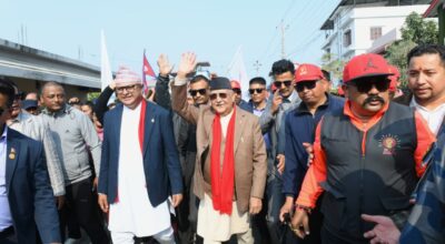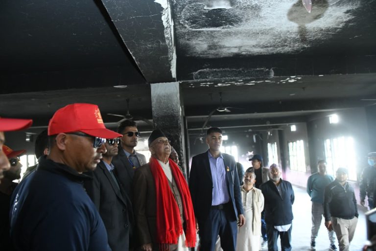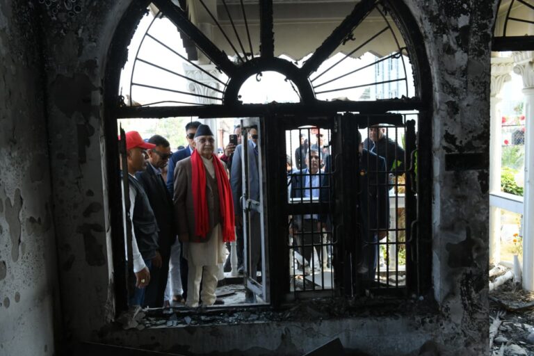अध्यक्ष ओलीले आफ्नो निर्वाचन क्षेत्र नम्बर ५ मा जेनजी आन्दोलनका क्रममा भएको आगजनीको क्षति निरीक्षण गर्नुभएकाे हाे।