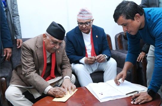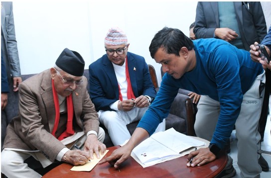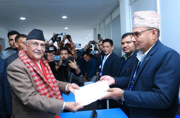 आगामी फागुन २१ गते हुने प्रतिनिधिसभा निर्वाचनका लागि अध्यक्ष ओलीले मंगलबार निर्वाचन अधिकृतको कार्यालय पुगेर अध्यक्ष ओलीले उम्मेदवारी दर्ता गराउनुभएकाे हाे। अध्यक्ष ओलीको समर्थक मेनुका काफ्ले र प्रस्तावक रोमनाथ ओली रहेका छन्। अध्यक्ष ओली अघि नेपाली कम्युनिस्ट पार्टीका उम्मेदवार रञ्जित तामाङले उम्मेदवारी दर्ता गराएका थिए ।