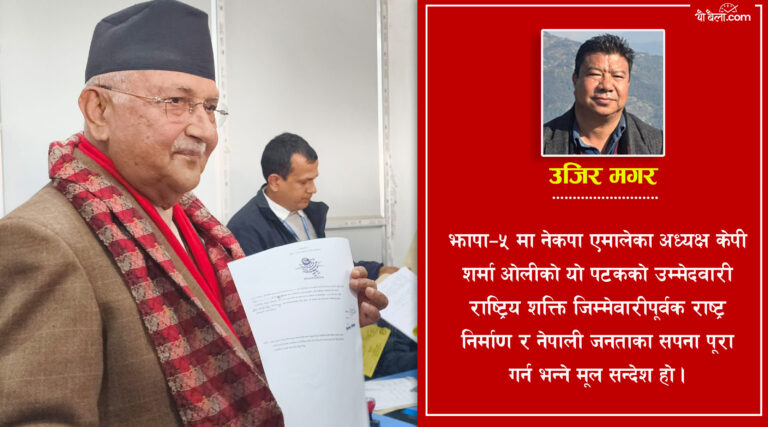 पुरानो र नयाँ दलको भाष्य स्थापित गर्न चौतर्फी स्थापित पुराना दलहरुमाथि आक्रमण गरिरहेको बेला अन्य दलका मूल नेतृत्वहरुले आफ्ना साविक निर्वाचन क्षेत्र परिवर्तन गरिरहेका छन्। झापा–५ बाट निरन्तर विजयी र तीन पटक प्रधानमन्त्री बनिसक्नु भएका ओलीले भने मंगलबार आफ्नै क्षेत्रबाट उम्मदेवारी मनोनयन गर्नुभयो। अध्यक्ष ओलीको यो मनोनयन, राष्ट्रिय राजनीतिमा नेकपा (एमाले) स्थापित राष्ट्रिय शक्ति हो भन्ने मूल सन्देश दिएको छ।
