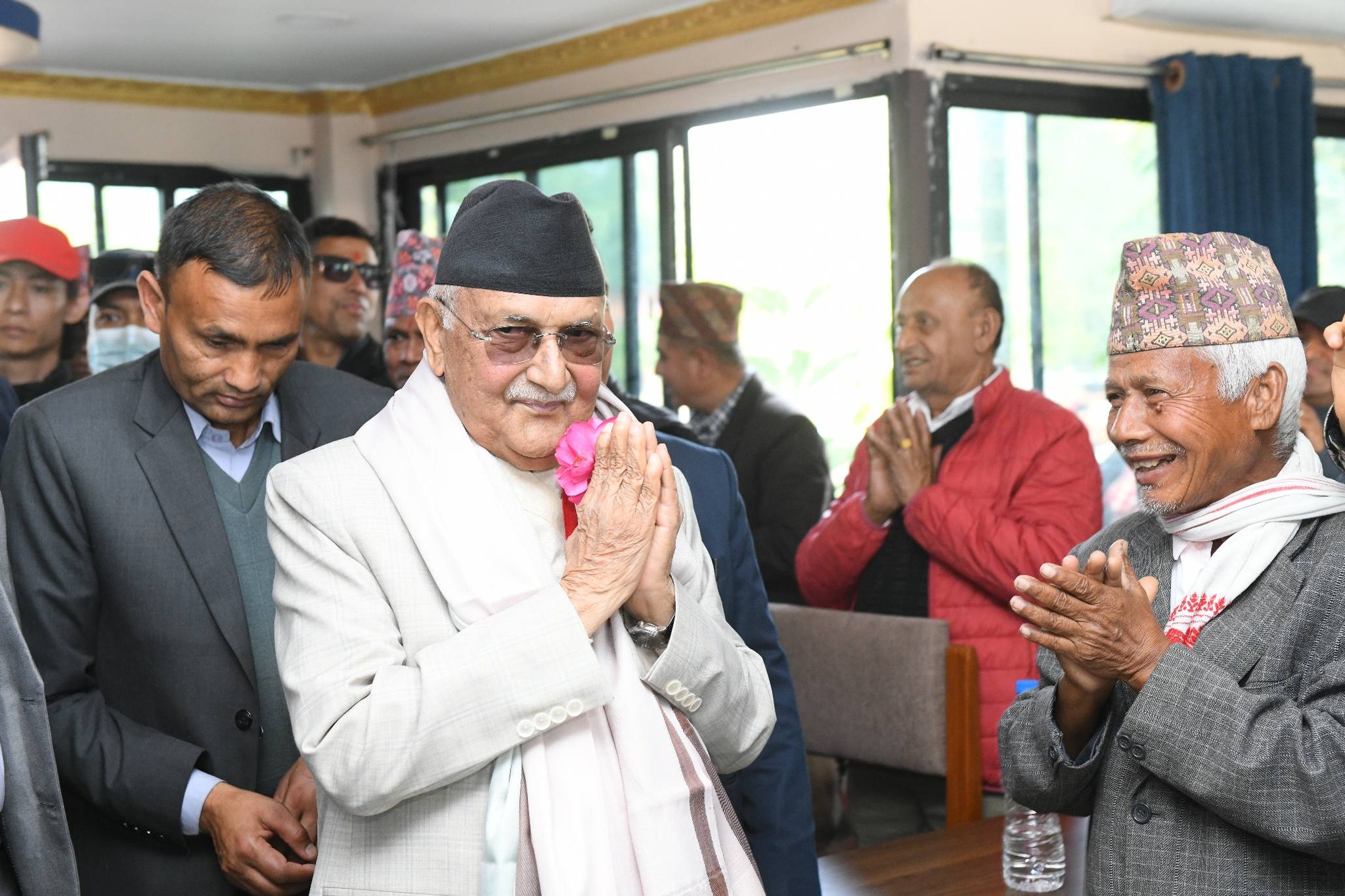 अध्यक्ष ओलीले आज झापा निर्वाचन क्षेत्र नं ५ का दक्षिणी भेगका कार्यकर्तासँग भेटघाट गर्नुभएकाे हाे।