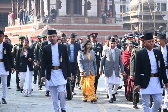 काठमाडौं-राष्ट्रपति रामचन्द्र पौडेलले यस वर्षको श्रीपञ्चमी (वसन्त पञ्चमी )को अवसरमा शुक्रबार बिहान हनुमानढोका दरबारस्थित नासलचोकमा आयोजित विशेष समारोहमा वसन्त श्रवण गर्नुभएको छ।
