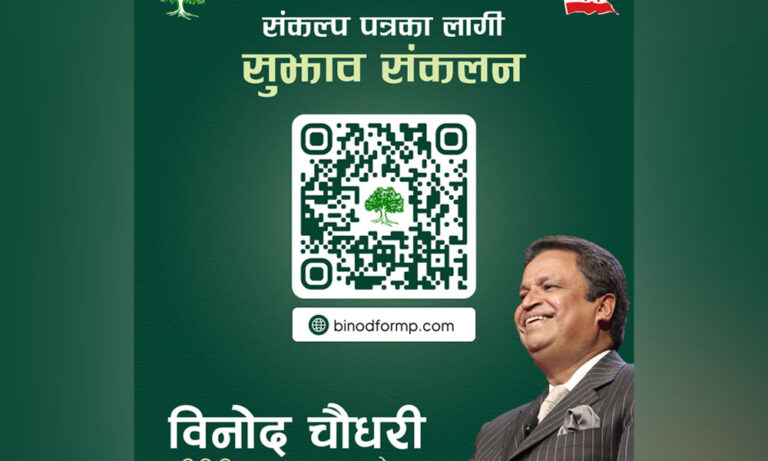नवलपरासीको विकासका लागि केवल दलको घोषणापत्र मात्र नभई सबैको ‘साझा संकल्पपत्र’ हुने भन्दै चौधरीले २ मिनेट समय निकालेर फारम भर्न र विजय यात्रामा सहभागी हुन अपिल गर्नुभएको छ ।