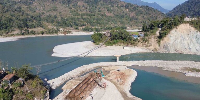 विसं २०७४ भदौ ३१ गते तत्कालीन प्रधानमन्त्री शेरबहादुर देउवाले शिलान्यास गर्नुभएको धाप्लाङघाट मोटरेबल पक्की पुलका लागि स्ल्याब ढलानको काम सुरु गरिएको छ । विसं २०७६ मा निर्माण सम्पन्न गरेर सञ्चालनमा ल्याउनेगरी धाप्लाङघाटको माटरेबल पक्की पुलका लागि सम्झौता गरिए पनि निर्माण कम्पनीमा आवद्ध ठेकेदारको लापारवाहीका कारण निर्माणको काम अलपत्र परेको हो ।