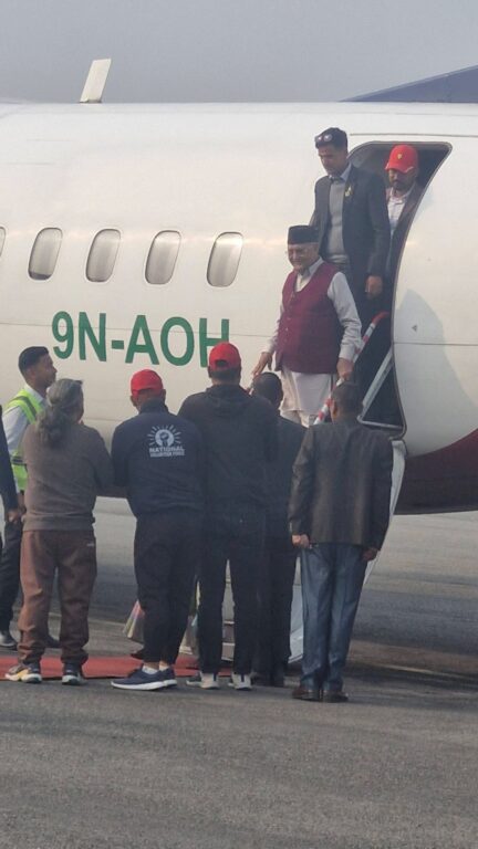 काठमाडौं-नेकपा एमालेका अध्यक्ष एवं पूर्व प्रधानमन्त्री केपी शर्मा ओली गृहजिल्ला झापा पुग्नुभएको छ। अध्यक्ष ओली गृह जिल्ला झापामा केहीबेरअघि यति एयरलाइन्सको विमानमार्फत भद्रपुरमा पुग्नुभएको हाे।