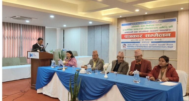 खानेपानी तथा सरसफाइका सवालहरू समेटेर आयोजित पत्रकार सम्मेलनमा फेडवासनका राष्ट्रिय अध्यक्ष राजेन्द्र अर्यालले जेनजी आन्दोलनबाट आएको परिवर्तनले नयाँ अवसर सिर्जना गरेको उल्लेख गर्दै निर्वाचनको तयारीमा जुटेका दलहरूले आम नागरिकका आधारभूत आवश्यकतासँग जोडिएका विषयलाई प्राथमिकतामा राख्नुपर्ने बताउनुभयो।