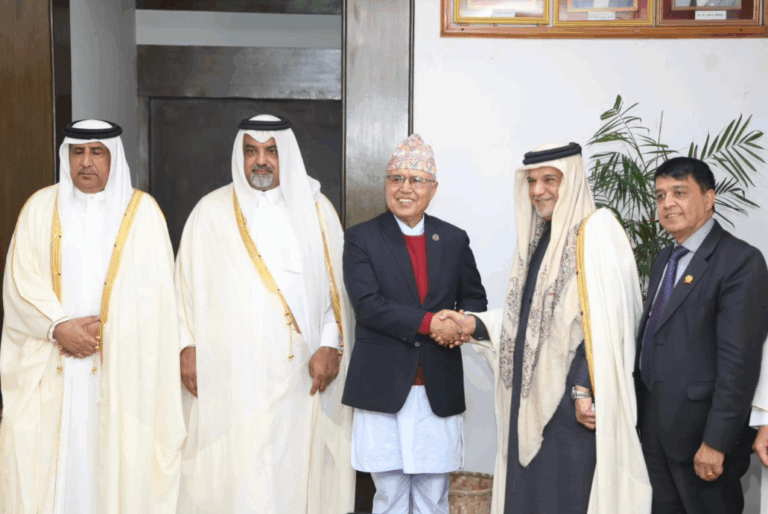 काठमाडौं-कतार चेम्बर अफ कमर्स एन्ड इन्डस्ट्रिजका बोर्ड सदस्य मोहद अहमद एम.ए. अलोबैदेलीको नेतृत्वमा आएको कतारी प्रतिनिधिमण्डले मंगलबार अर्थमन्त्री रामेश्वर प्रसाद खनाल र परराष्ट्रमन्त्री बालानन्द शर्मासँग भेटवार्ता गरेको छ।