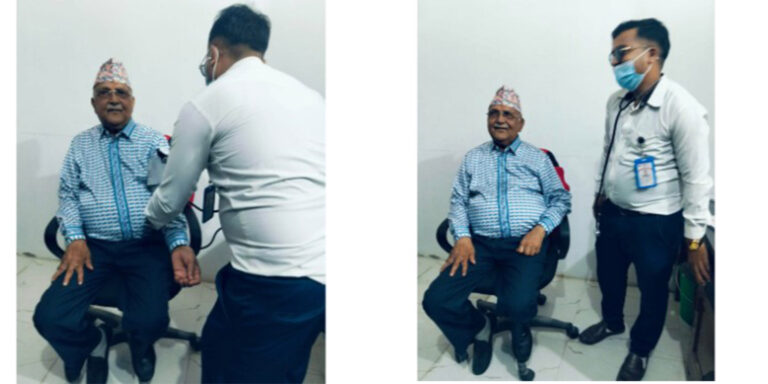 दमक-नेकपा एमालेका अध्यक्ष केपी शर्मा ओलीले सोमबार दमक १ मा रहेको दमक अस्पतालमा स्वास्थ्य परीक्षण गराउनु भएको छ । विभिन्न टोलमा रहेका नागरिकहरुसँग भेट गर्ने क्रममा ओली सो अस्पतालमा पुगि आफ्नो स्वास्थ्य परीक्षण गराउनु भएको हो । अस्पतालका मेडीकल सुपरीटेण्डेन्ट डा. कृष्ण शाहले ओलीको स्वास्थ्य परीक्षण गर्नु भएको थियो । परीक्षणका क्रममा ओलीको स्वास्थ्य सामान्य पाईएको थियो ।