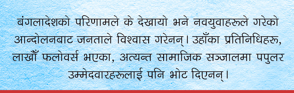जेनजी आन्दोलनकै कारण नयाँ निर्वाचन भएको बंगादेशको परिणाममा जेनजी आन्दोलनकारीहरूले सर्मनाम पराजय भोगे। नेपालमा यसको असर कस्तो पर्ला ?