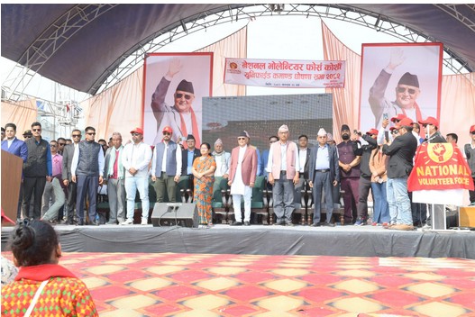 पार्टी अध्यक्ष ओलीले अहिले सम्बोधन गरिरहनुभएको छ। सो भेलामा प्रदेशका विभिन्न जिल्लाबाट फोर्सका कार्यकर्ता सहभागी भएका छन्।