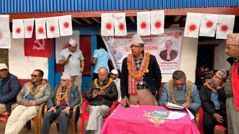 सचिव ढकाल चुनावी अभियानकै क्रममा जिल्लाको विभिन्न ठाउँमा मतदाताकाे घर घरमा पुग्नुभएको छ। सचिव ढकाल पुगेको ठाउँहरुमा जनताको उत्साहपुर्ण सहभागिता देखिन थालेको छ। देश निर्माणमा एमाले र जिल्लाको विकासमा आफ्नो महत्वपूर्ण भूमिका रहने उहाँले बताउदै आउनुभएकाे छ।