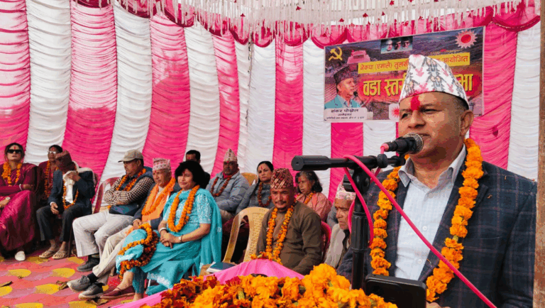 आफ्नो जन्मभूमि तुलसीपुर उपमहानगरपालिका–१९ मा आयोजित चुनावी सभालाई सम्बोधन गर्दै महासचिव पोखरेलले दाङको समृद्धि र समुन्नत भविष्यका लागि आफूलाई पुनः विजयी गराउन आग्रह गर्नुभयाे।