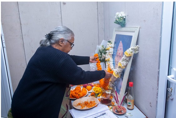 त्यस क्रममा प्रधानमन्त्री कार्कीले दिवंगत अध्यक्ष ओलीका पिता मोहनप्रसाद ओलीको तस्वीरमा माल्यार्पणसहित श्रद्धाञ्जली दिनुभयाे ।