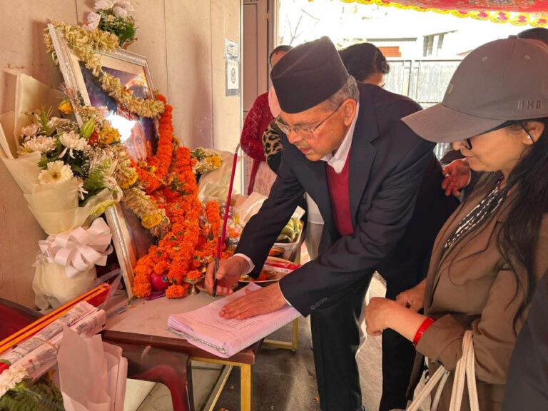 नेता खनालले त्यहाँ पुगेर अध्यक्ष ओलीका पिता मोहनप्रसाद ओलीप्रति श्रद्धाञ्जली व्यक्त गर्दै परिवारजनमा समवेदना प्रकट गरेका छन्।