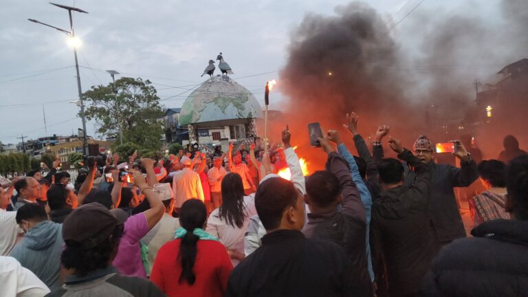 शनिबार काठमाडौंको माइतीघर मण्डलादेखि नयाँ बानेश्वरसम्मको क्षेत्र तनावग्रस्त बनेको हो। भीड नियन्त्रणका लागि प्रहरीले कडा सुरक्षा व्यवस्था अपनाएको छ भने केही स्थानमा सवारी आवागमन समेत प्रभावित भएको छ।