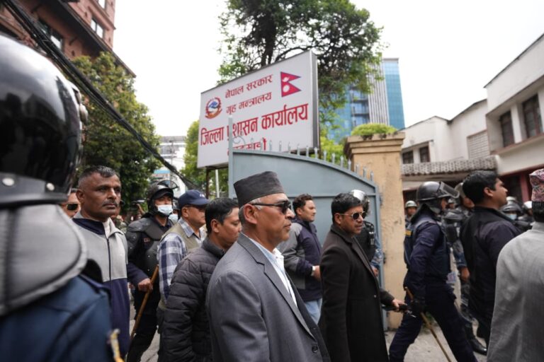काठमाडौँ- पूर्व प्रधानमन्त्री तथा पार्टी अध्यक्ष केपी शर्मा ओली पक्राउको विरोधमा नेकपा एमालेले काठमाडौँ जिल्ला प्रशासन कार्यालयमा विरोधपत्र बुझाएको छ।