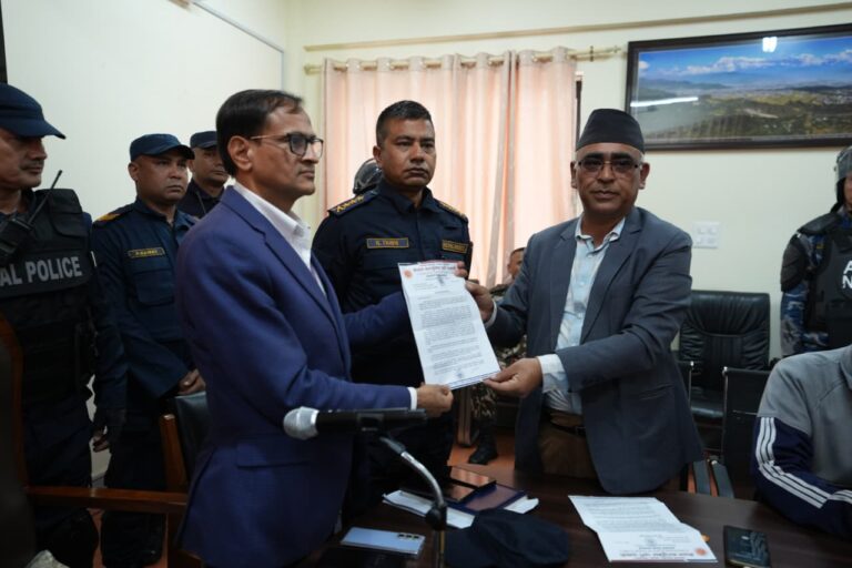 काठमाडौंका सीडीओ ईश्वरराज पौडैललाई विरोधपत्र बुझाएपछि एमालेका एक नेता भने, ‘न्यायको लागि लडिरहनेछौँ।’