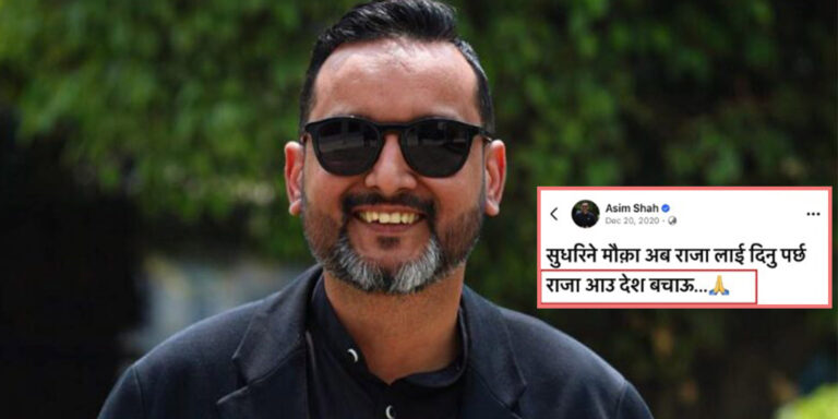 यसै सन्दर्भमा, प्रधानमन्त्री बालेनका राजनीतिक सल्लाहकार असिमले ६ वर्षअघि सामाजिक सञ्जाल फेसबुकमा लेखिएको स्टाटस यतिबेला एकाएक भाइरल बनेको छ। २०७७ पुस ५ गते उनले फेसबुकमा लेखेको स्टाटस अहिले भाइरल बनेको हो। त्यतिबेला फेसबुक स्टाटसमा उनले राजसंस्था पुनर्स्थापना गर्नुपर्छ भनेका थिए।