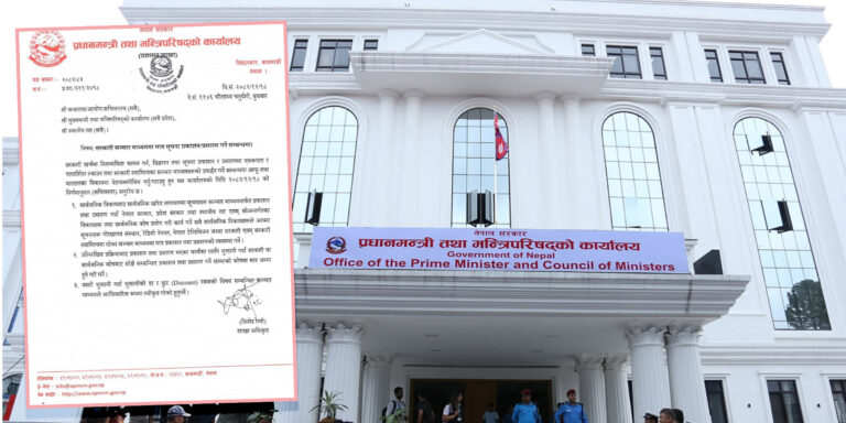 प्रधानमन्त्री तथा मन्त्रिपरिषद्को कार्यालयले बुधबार संघीय सरकारका सबै मन्त्रालय, आयोग, सचिवालय, सातै प्रदेश र सबै स्थानीय तहलाई गरेको परिपत्रमा सार्वजनिक खरिदका सूचना प्रकाशन प्रसारणमा कडाइ गरेको हो।
