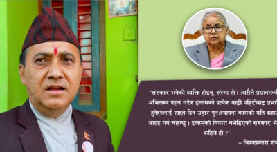 काठमाडौं-नेपाली कांग्रेसका महामन्त्री विश्वप्रकाश शर्माले इलामको विपद्मा नभेटिएको सरकार भेटिने कहिले हो भन्दै प्रश्न गर्नुभएको