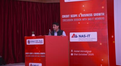 काठमाडौं-ग्लोबल आइएमई बैङ्क लिमिटेडले नेपाल एशोसियसन अफ सफ्टवेयर एन्ड आइटी सर्भिसेस (नास-आइटी)का सदस्यहरूसँग बैङ्कको कर्जा