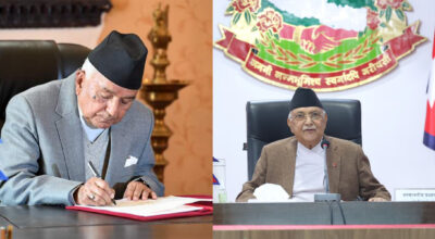 काठमाडाैँ-राष्ट्रपति रामचन्द्र पौडेलले प्रधानमन्त्री केपी शर्मा ओलीको राजिनामा स्वीकृत गरेका छन्। राष्ट्रपतिका प्रेस सल्लाहकार किरण