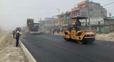 दमौली-मुग्लिन-पोखरा सडक योजना (पश्चिम खण्ड) अन्तर्गत जामुने बजारमा कालोपत्र गर्न सुरु भएको छ। यो खण्डको