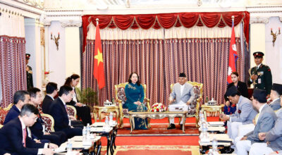 काठमाडौँ-राष्ट्रपति रामचन्द्र पौडेलसँग नेपाल भ्रमणमा रहनुभएकी समाजवादी गणतन्त्र भियतनामका उपराष्ट्रपति वो थि आन्ह सुआनले आज
