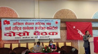 काठमाडौं– नेकपा एमाले निकट अखिल नेपाल महिला संघ (अनेमसंघ)को बैठक काठमाडौंमा सुरु भएको छ ।