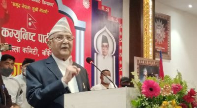 बर्दिया–नेकपा एमालेका अध्यक्ष केपी शर्मा ओलीले पार्टी फुटेको होइन, दुई-चार जना नेता/कार्यकर्ता मात्रै बाहिरिएको बताउनु
