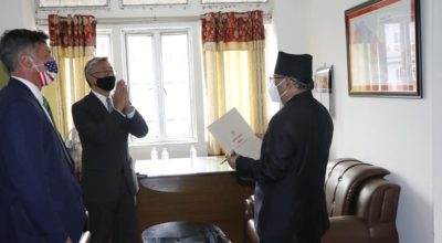 काठमाडौं – नेपाल भ्रमणमा रहेका अमेरिकी सहायक विदेशमन्त्री डोनाल्ड लु र नेकपा एमाले अध्यक्ष केपी